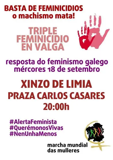 Esta convocatoria farase tamén en todos os concellos de Galicia como resposta do feminismo galego. Apoian estas concentracións asociacións como “Alerta feminista”; Querémonos vivas” ; Nen unha menos” e a “Marcha mundial das mulleres”.