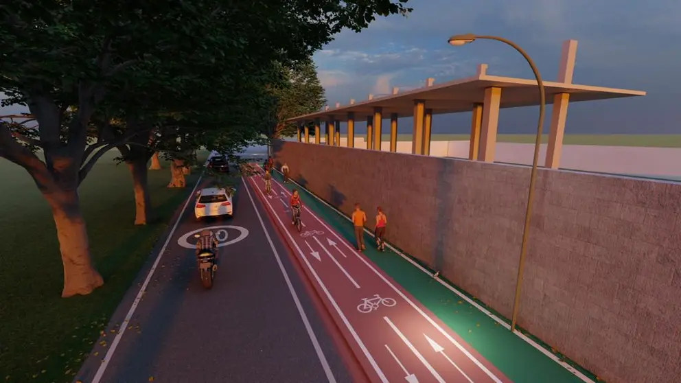 O proxecto contempla traballos de demolición, limpeza, nivelación e pavimentación para a creación da senda peonil, coa supresión de barreiras arquitectónicas e a execución do carril bici. Tamén se prevé a substitución das lámpadas de iluminación e a mellora do firme da vía principal e dos viais anexos que dan servizo ás infraestruturas deportivas.