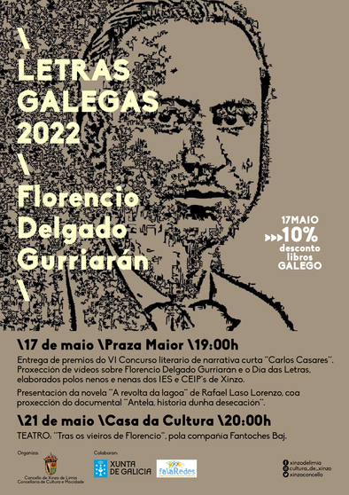Como cada mes de maio, a Concellería de Cultura de Xinzo de Limia vén de presentar a programación das Letras Galegas con actos que van máis alá da literatura e mesturan dende música ata teatro. Incentivar a lectura é o principal obxectivo, polo que a feira do libro da Praza Maior, prevista para o 17 de maio, ofrecerá descontos do 10 % para os exemplares en lingua galega. Nesa mesma xornada e no mesmo escenario, ás 19.00 horas, entregaranse os premios do Concurso literario de narrativa curta Carlos Casares, que repartirán case 2.000 euros entre os galardoados para mercar nas librarías da vila. Seguidamente, proxectaranse vídeos sobre Florencio Delgado, o homenaxeado coas Letras Galegas, realizados polos alumnos e alumnas dos CEIP de Xinzo.