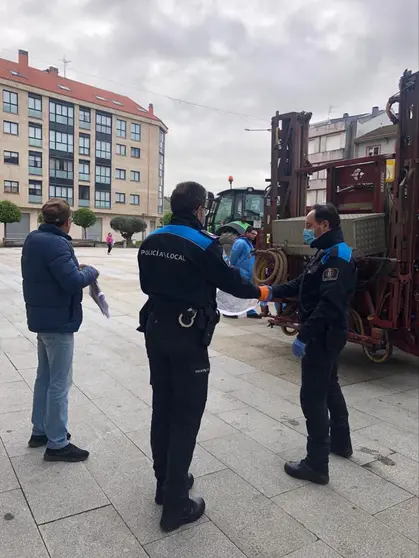 O operativo, coordinado polo concelleiro de medio rural, Amador Penín, arrancou esta mañá e conta cunha ducia de vehículos agrícolas, aos que hai que sumar a pick-up da brigada municipal, que se ocupa diariamente da desinfección dos puntos críticos, e os coches de protección civil e bombeiros.