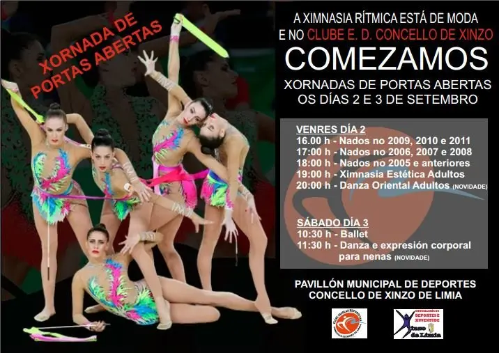 Os días 2 e 3 de setembro haberá xornada de portas abertas na actividade de ximnasia rítmica que organiza o club E.D. Xinzo.