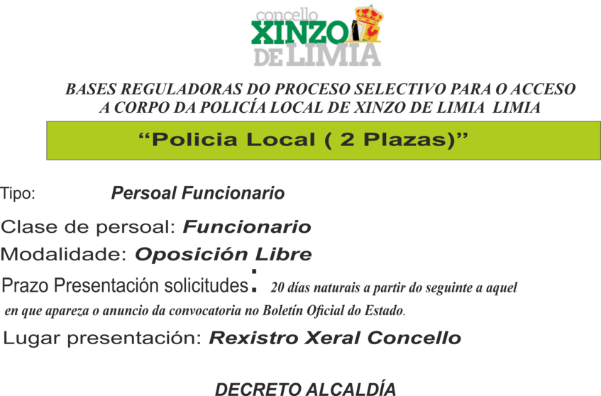 BASES REGULADORAS DO PROCESO SELECTIVO PARA O ACCESO A CORPO DA POLICÍA LOCAL DE XINZO DE LIMIA LIMIA Bases oposición policia local Bases en GALEGO Bases en CASTELLANO