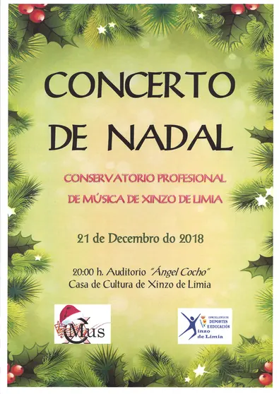 Xa case estamos nos días de Nadal e, ao igual que todos os anos, o alumnado do Conservatorio Profesional de Música de Xinzo de Limia festexarao con música para toda a veciñanza. Será este venres, día 21 de decembro, cando os rapaces e rapazas terán a oportunidade de lle amosar ás familias e a toda a cidadanía de Xinzo, o resultado do seu esforzo e traballo durante o primeiro trimestre do curso académico.