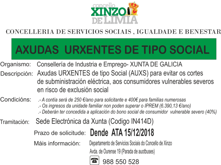 Axudas URXENTES de tipo Social Para evitar os cortes de enerxía eléctrica Axudas urxentes de tipo social
