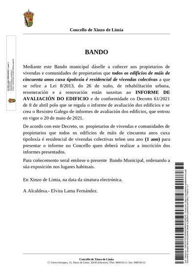 Bando da Alcaldía sobre o informe de avaliación de edificios