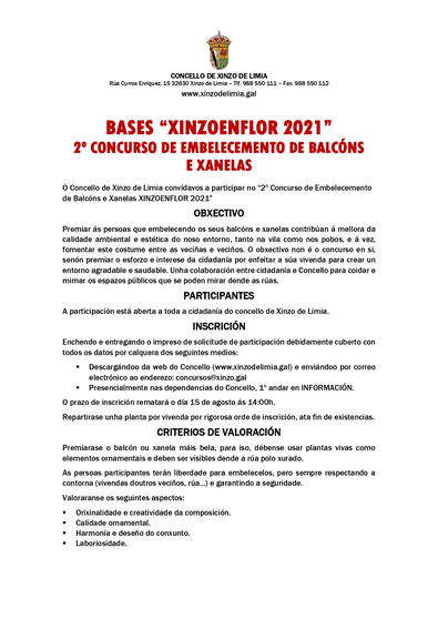Consulta aquí as bases para participar en “Xinzoenflor 2021”. Concurso de embelecemento de balcóns e xanelas