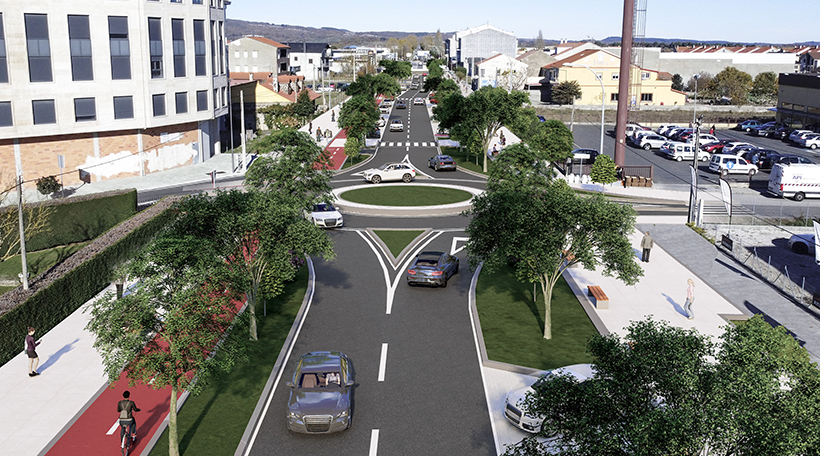 - A humanización inclúe dúas novas glorietas e na zona do Pombal e da Praza Maior proxéctase unha plataforma elevada ao mesmo nivel das beirarrúas, para dar prioridade aos tráficos peonís.