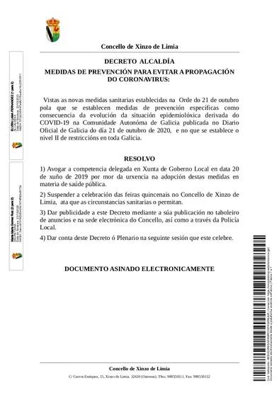 Decreto suspensión feiras
