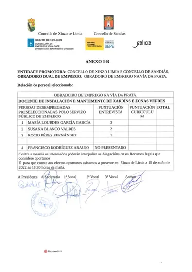Persoal seleccionado para monitor de xardinería do Obradoiro de Emprego Vía da Prata personal seleccionado