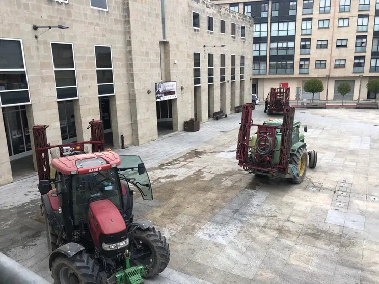 Os tractores dos agricultores de Xinzo volven a percorrer as rúas da vila e as rúas de todos os pobos do concello para desinfectalas, baixo a coordinación do goberno local e en concreto do concelleiro de Medio Rural, Amador Penín.