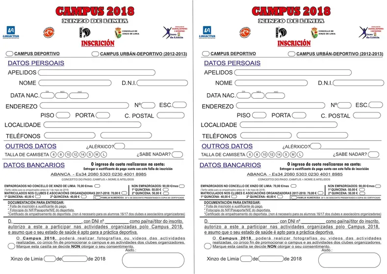 Para máis información sobre o campus ou para inscribirse, pódese acudir á Casa de Cultura ou ao pavillón ata o 21 de xuño. Coa cota de inscrición darase o equipamento.