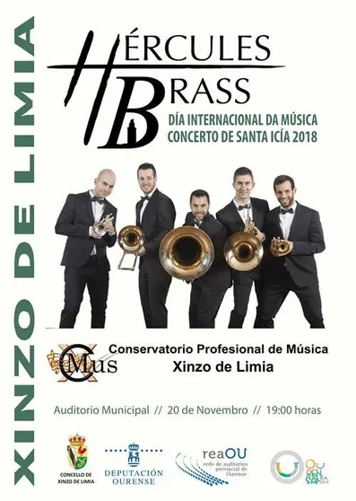 Este ano o Conservatorio de Música Profesional de Xinzo trae ata o Auditorio Municipal ao grupo Hércules Brass. Este grupo de 5 galegos fan música con instrumentos de vento.