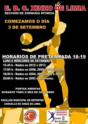 O Clube Deportivo do Concello de Xinzo de Limia na súa sección de Ximnasia rítmica comeza os seus cursos o vindeiro 3 de setembro, e durante todo o mes haberá portas abertas para quen queira anirmase a probar.