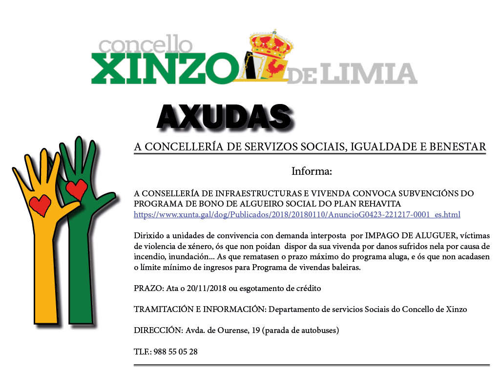 Concello Novas Axudas 07/03/2017 xinzodelimia.es Información en Concellería de Servicios Sociais, Igualdade e Benestar